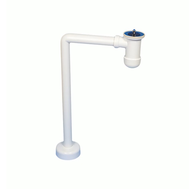 Kylpyhuoneen kumitulpallinen pullovesilukko. Halkaisija 32 mm, kovalla poistoputkella. Pohjaventtiilin ja vesilukkorungon etäisyyttä mahdollisuus säätää teleskooppisesti. Valkoinen.